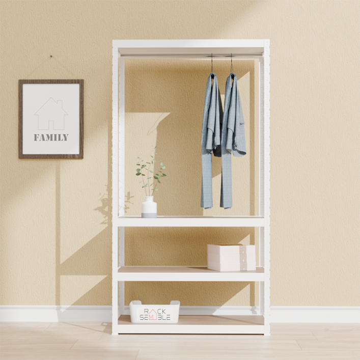 랙셈블 선반 4단 행거봉 세트, 화이트