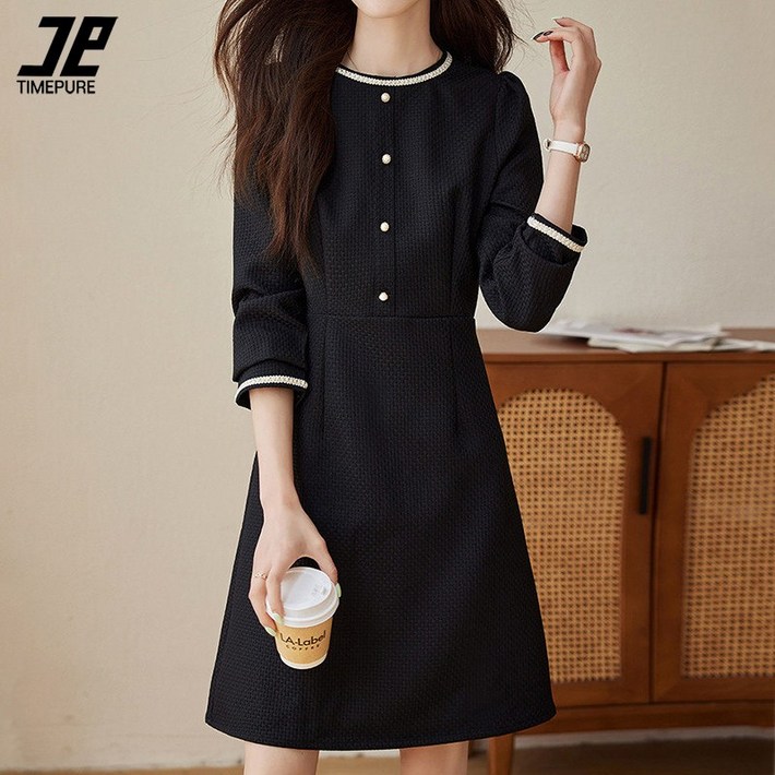 여성 트위드 원피스 미디 하객룩 오피스룩 데이트룩 정장 원피스 명품 봄 가을 슬림핏 긴팔 라운드 스커트