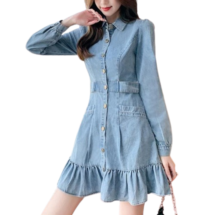 티티웍스 여성 셔츠 프릴 플레어 미니 원피스