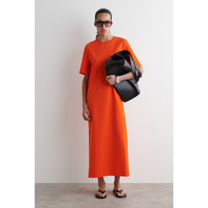 어반룩북 하객룩 브이넥 스트링 미디 반팔 원피스