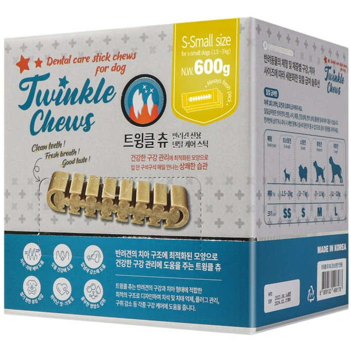 펫퍼스 트윙클츄 디스펜서 강아지덴탈껌 개껌 치석제거 강아지간식 입내샘제거 강아지껌, SS초소형, 5g, 120개