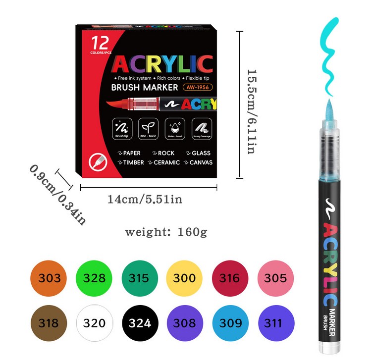 120 색상 아크릴 페인트 펜 마커 브러시 팁 바위 그림 나무 캔버스 스톤 크리스마스 선물 DIY 공예