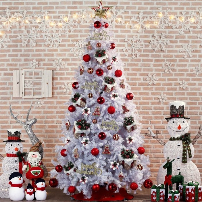 유판 크리스마스 트리 무장식 고급PE혼합 전나무 오너먼트 풀세트, D 트리조명레드 오너먼트 풀세트