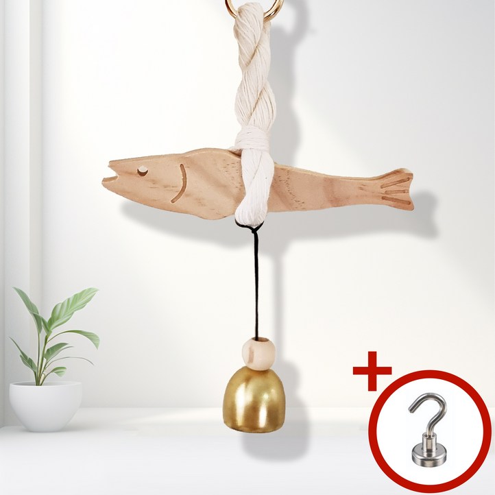 샤샤벨 우리집을 지켜주는 북어 도어벨 액막이 명태 문종 집들이 선물 종 현관문 우드 인테리어