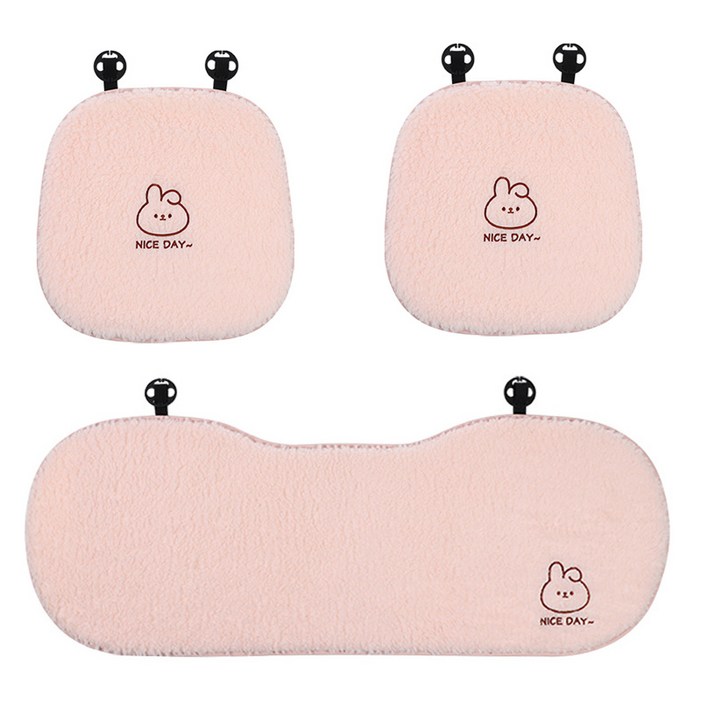 마법의 주머니 프리미엄 겨울 극세사 부드럽고 따뜻한 자동차 시트 방석, 1세트, 연핑크 토끼 앞좌석 2p뒷좌석 방석1p