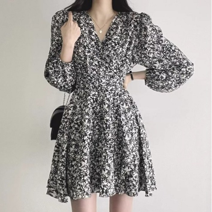 여성 러블리 플라워 플레어 미니 랩 원피스 DHHL02