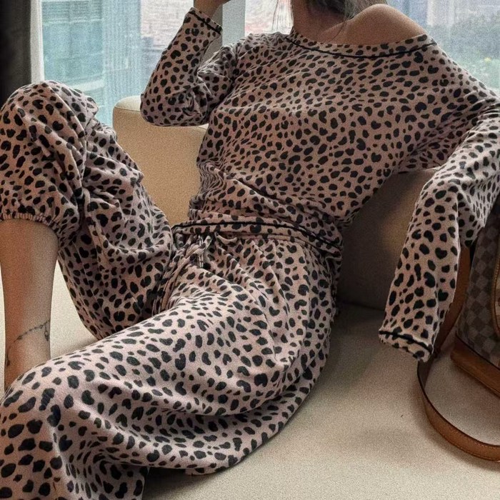 AURALA 여성 투피스 세트 가을 겨울 빅사이즈 패션 박시 스트라이프 프린트 편안한 크롭 상의바지 투피스 데일리 홈웨어 세트