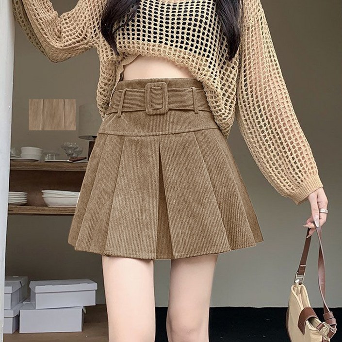 마켓에이 여성용 벨티드 골덴 코듀로이 미니 스커트