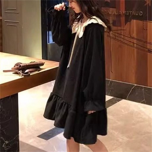 TKX 귀여운 루즈핏 긴팔 원피스 귀여운 칼라 프릴 디테일 미디 드래스 봄 가을 여성 의상 루즈핏 KC69