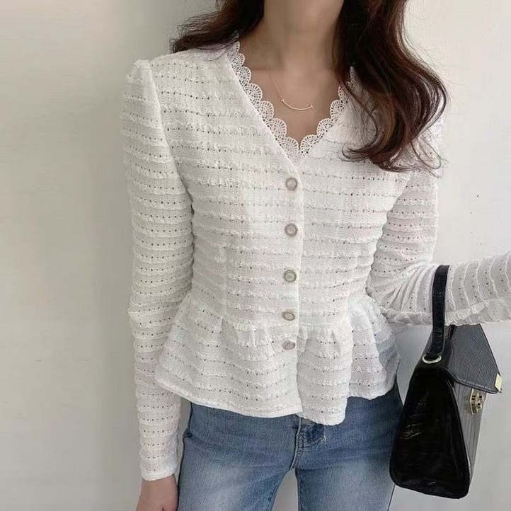 사방스판 a라인 오피스 긴팔블라우스 캐쥬얼 간절기 자켓블라우스 진주단추 데일리룩